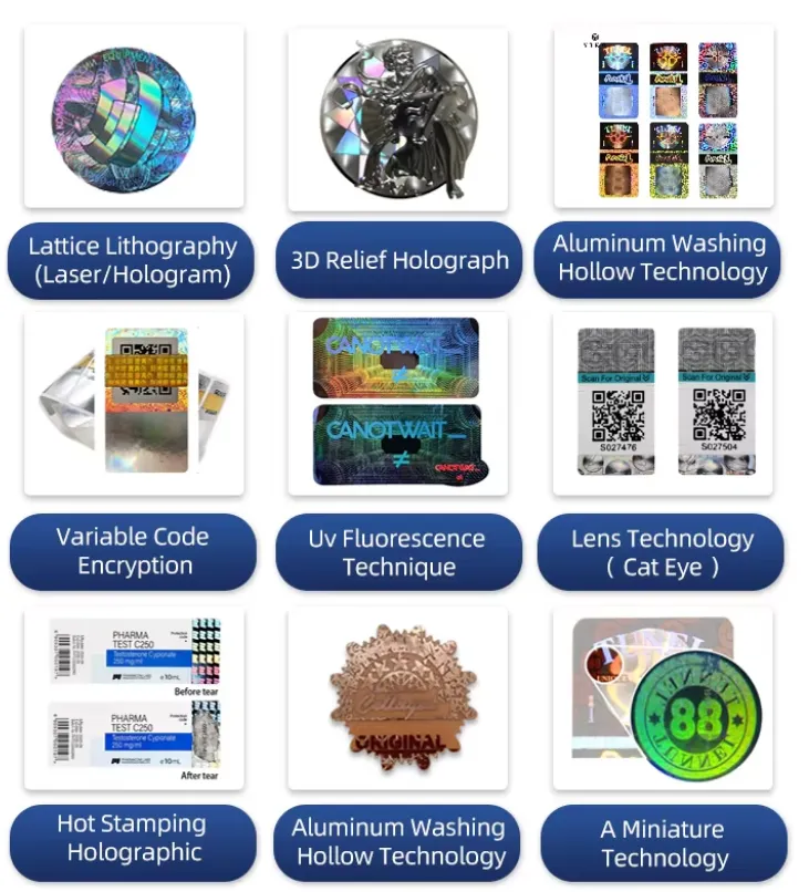 Etiqueta anti-assaltopossui efeito de imagem tridimensional exclusivo e alta segurança. Esse tipo de adesivo registra imagens ou informações específicas em forma tridimensional em um meio especial através do princípio da interferência a laser, formando um padrão holográfico difícil de copiar.