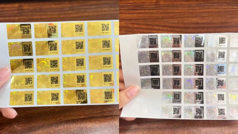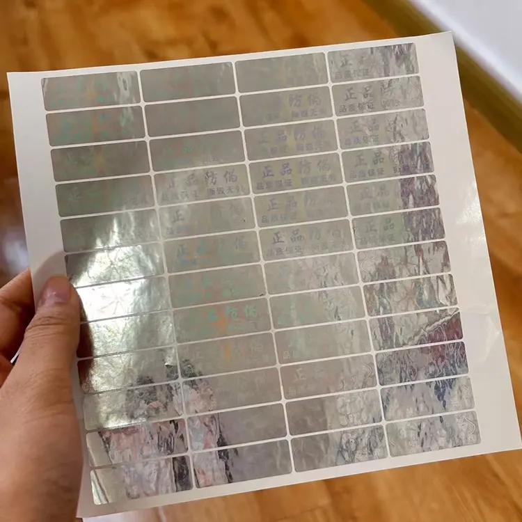 2. Label de anti-controlagem a laser a laser:Feito usando a tecnologia de fabricação de placas de holograma a laser e a tecnologia de replicação de corte de matriz. O rótulo apresenta padrões exclusivos de laser, que podem ser identificados como genuínos ou falsos, observando com o olho nu ou usando um dispositivo de ampliação para visualizar os recursos gravados internos. Os padrões de diferentes marcas de rótulos anti-contracadeiras a laser a laser são diferentes , e podem ser personalizados.