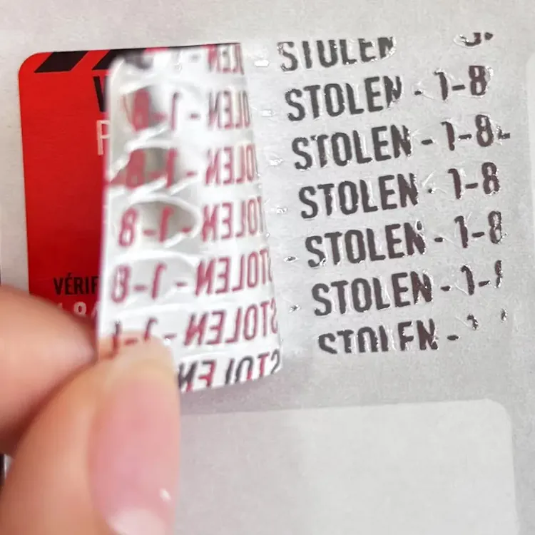 3. Rótulo anti-assalto de apoio:É também um rótulo anti-adolor. Quando o rótulo é aberto, um padrão ou texto específico será deixado na camada inferior, indicando que o rótulo foi aberto e impedindo que ele seja reutilizado, adicionando uma camada adicional de segurança para o produto. Por exemplo, depois de ser aberto, pode exibir as palavras "abertas" ou o padrão específico da marca.
