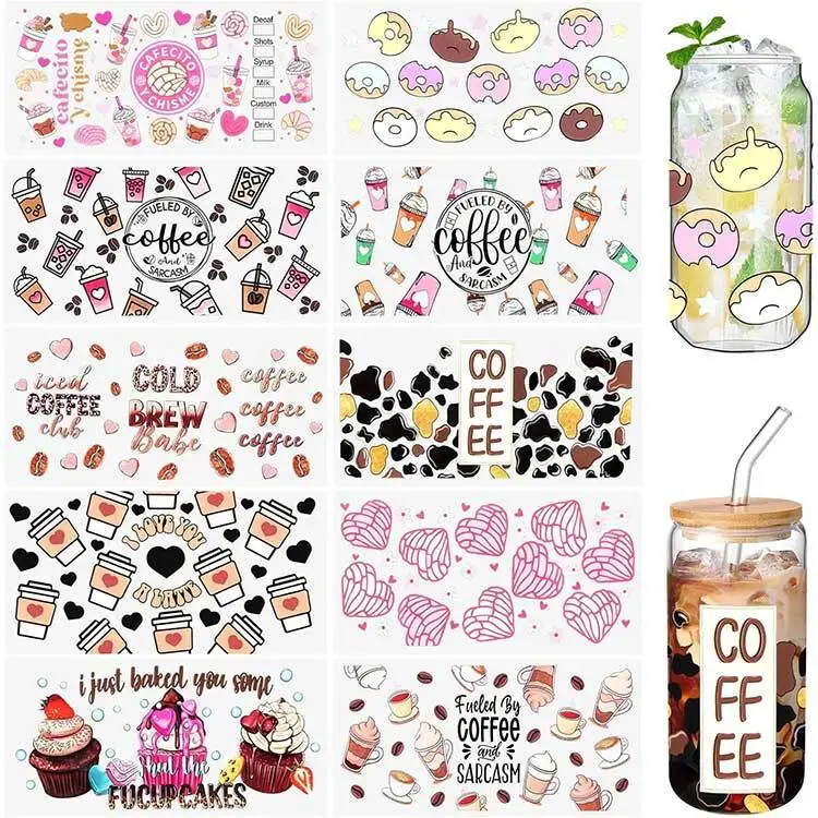 Os adesivos para embrulhar copos são feitos de um substrato UV DTF profissional à prova d'água. Esses adesivos apresentam desempenho excepcional de resistência à água. Não há necessidade de se preocupar com manchas de água ou respingos de bebidas durante o uso diário, pois eles suportam lavagem com água para facilitar a limpeza. Mesmo ao limpar talheres, os adesivos não descascam ou desbotam facilmente, mantendo uma aparência brilhante e vívida por muito tempo.