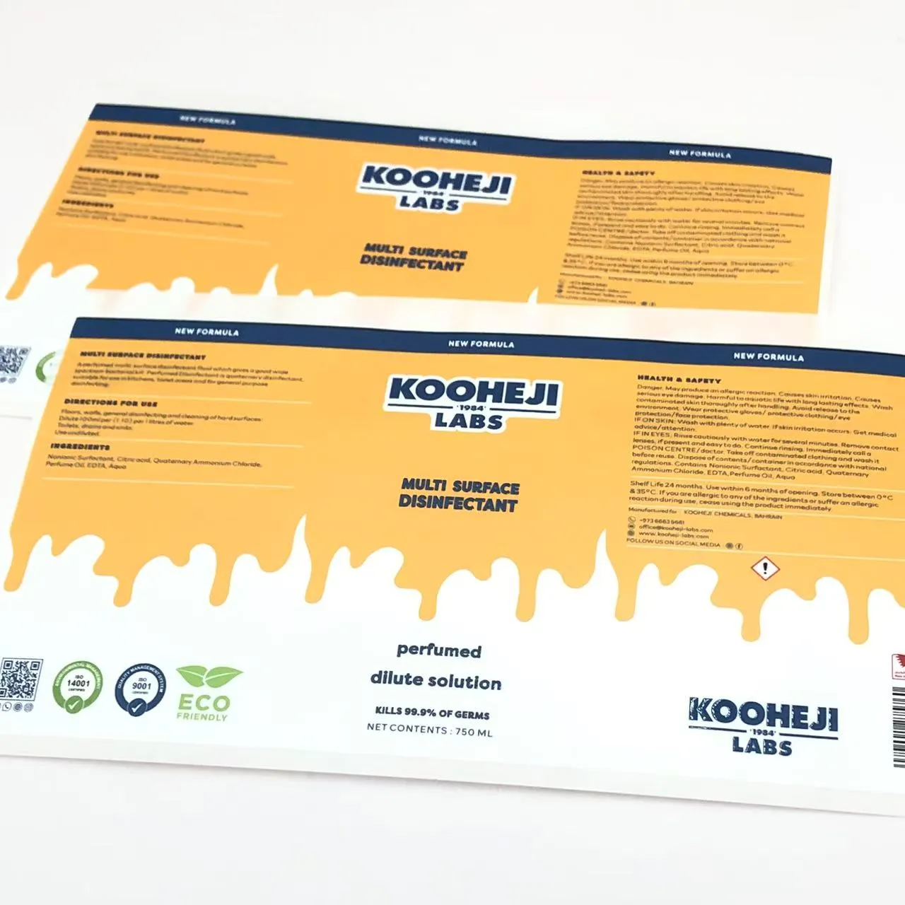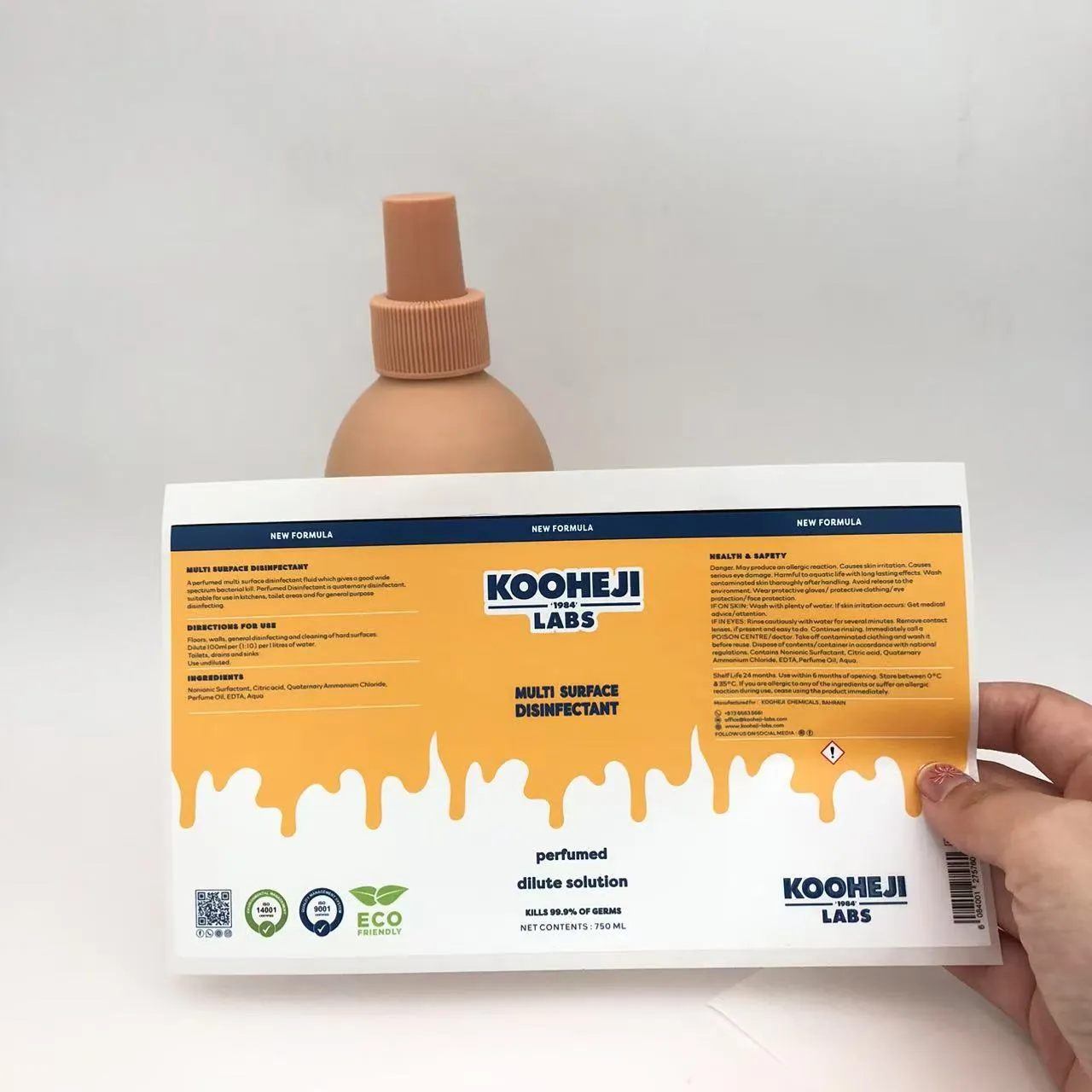 Descrição do serviço OEM/ODM de etiquetas de embalagens de garrafas desinfetantes