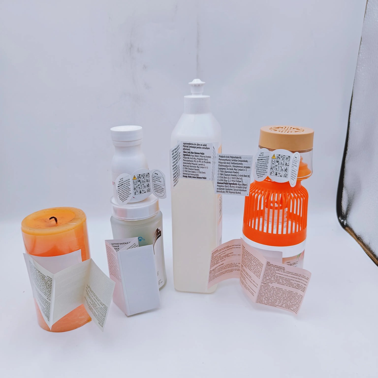 Para vários tipos de velas, como velas perfumadas, de cera de abelha ou decorativas, as etiquetas desdobráveis em livretos são ideais para integrar informações multidimensionais. Eles podem incluir diretrizes essenciais de segurança, como manter-se afastado de produtos inflamáveis, duração adequada da queima e métodos de extinção.