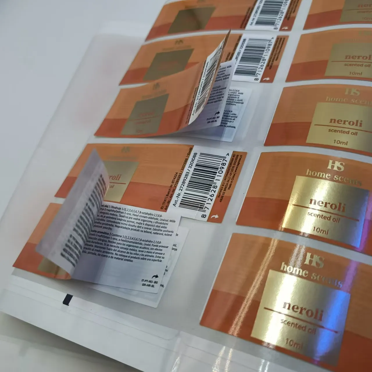 No setor de beleza, esses rótulos acomodam listas detalhadas de ingredientes e incluem declarações de alérgenos e guias de aplicação passo a passo.
