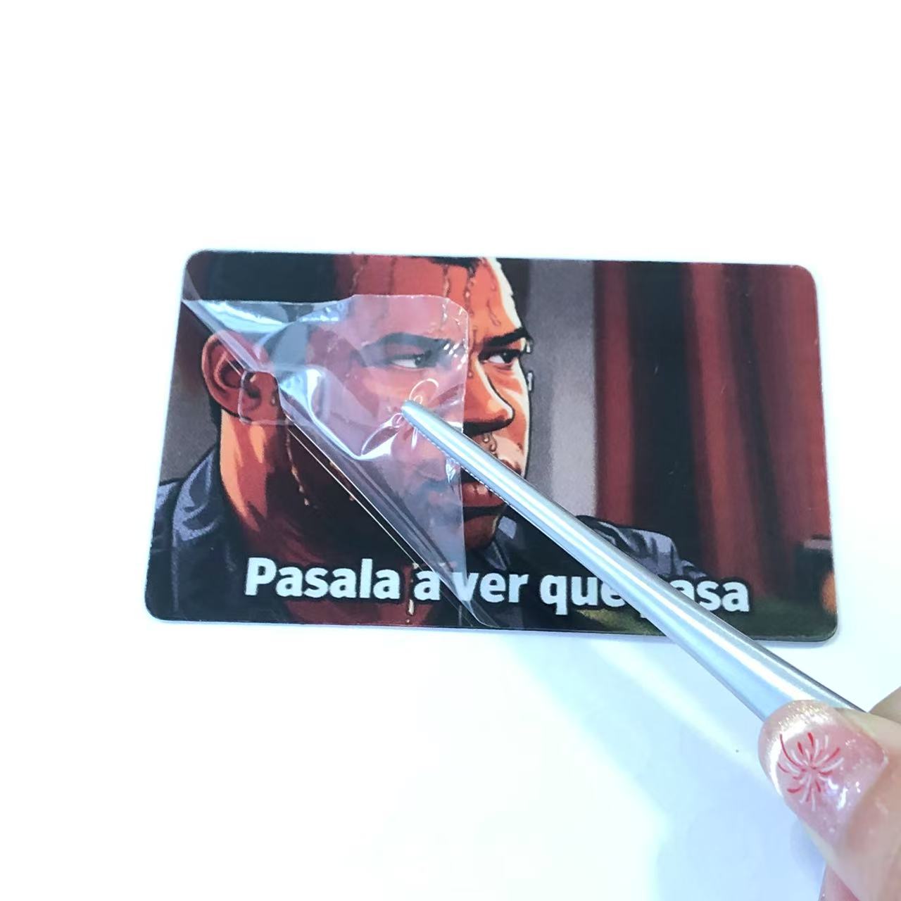 Para garantir a qualidade do produto durante o transporte, cada adesivo de cartão de crédito é equipado com uma película protetora na superfície. Esta camada protetora protege eficazmente os adesivos contra arranhões, poeira e outros danos potenciais que podem ocorrer durante o transporte. Ao receber a mercadoria, o cliente só precisa retirar a película protetora para revelar o aspecto claro e vibrante dos adesivos do cartão de crédito.