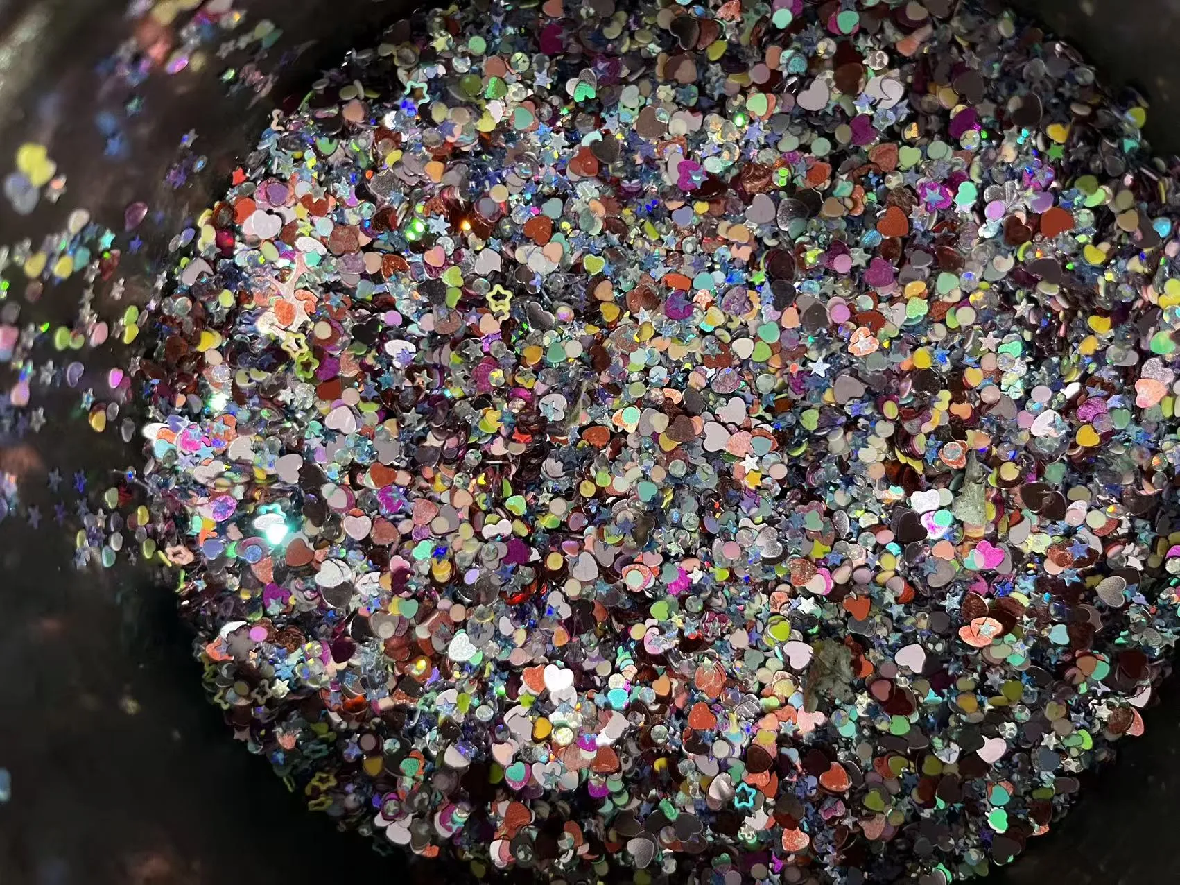 A concha de plástico é feita de materiais de alta qualidade, garantindo diversão duradoura. De estrelas e corações a círculos e formas personalizadas, cada tipo de lantejoulas reflete lindamente a luz, criando um efeito hipnotizante.