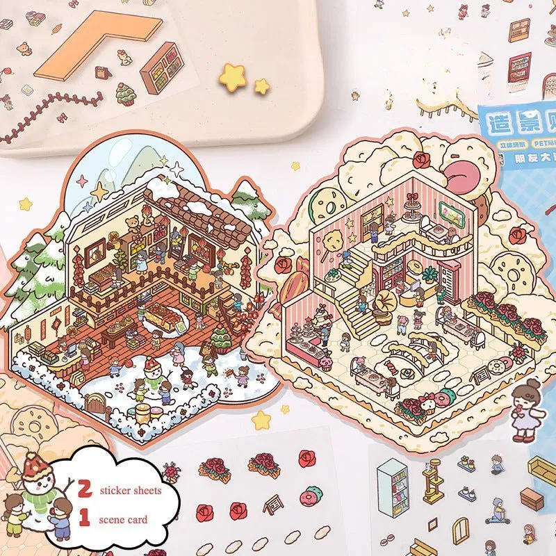 As crianças podem combinar livremente várias cenas, como cozinha, quarto e jardim, para construir suas próprias cabanas de sonho, assim como construir com blocos. Os adesivos podem aliviar rapidamente o estresse por meio de métodos interativos, como colar e empilhamento.