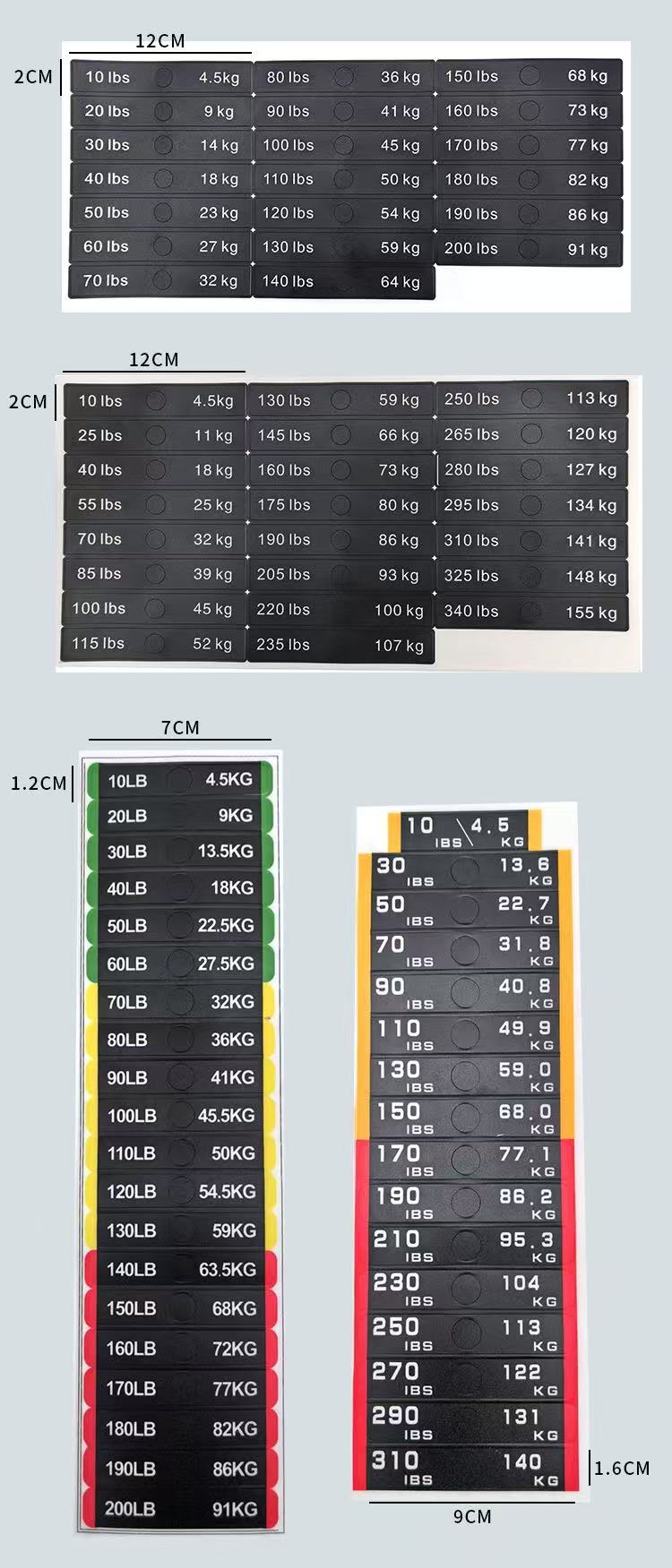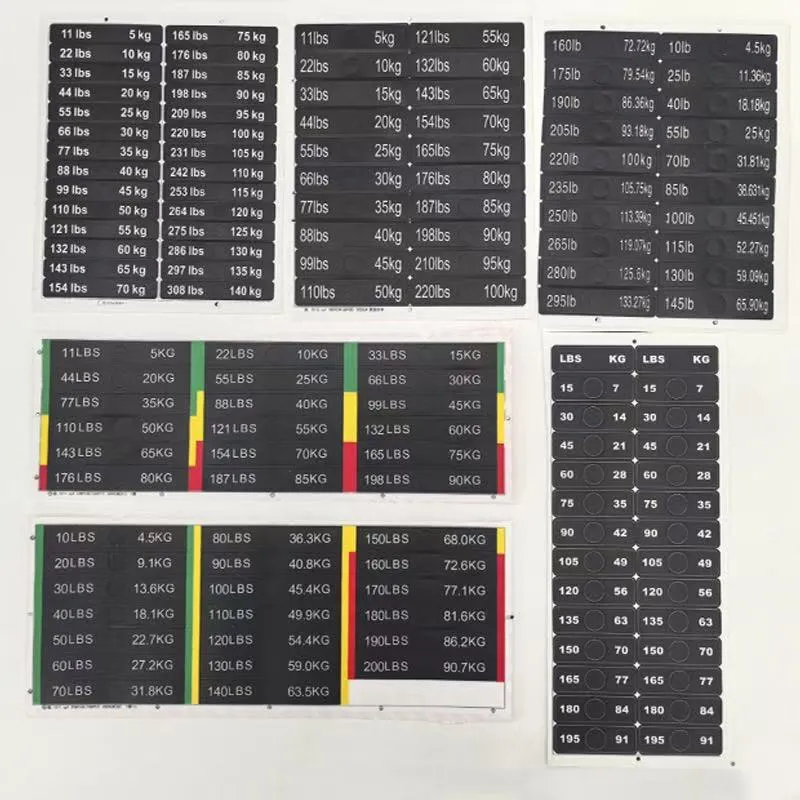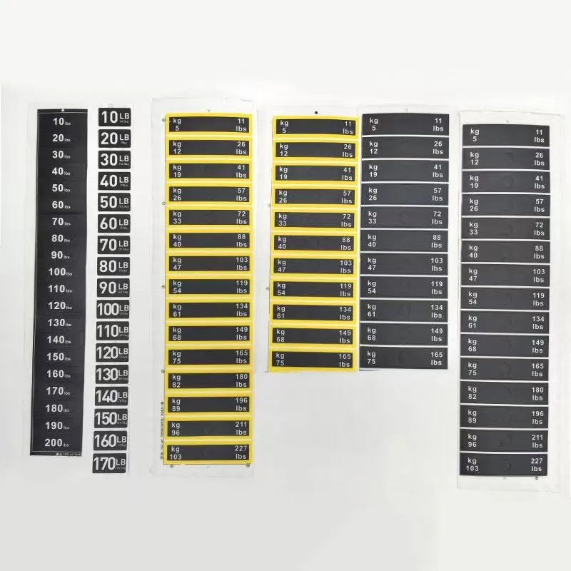 Feitos com materiais de qualidade premium, esses adesivos são resistentes ao desgaste causado pelo uso diário. O texto impresso permanece nítido e sem desbotamento durante toda a vida útil do equipamento de fitness, garantindo um desempenho duradouro. Com marcações de peso claras, os usuários podem acompanhar melhor o progresso do seu condicionamento físico e definir metas de treinamento, alcançando um gerenciamento científico do treinamento.