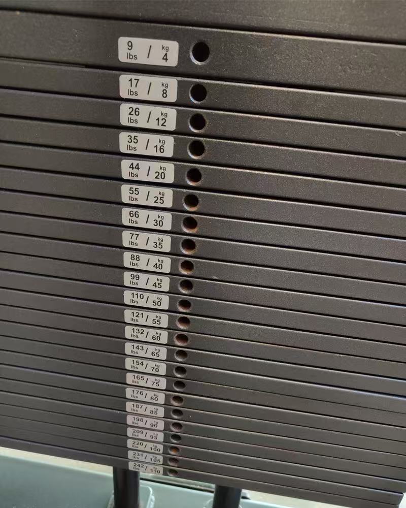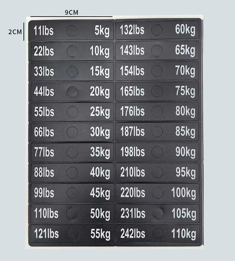 Cada adesivo é claramente marcado com valores de peso, permitindo que os usuários identifiquem e selecionem rapidamente blocos de peso adequados à sua intensidade de treinamento e evitem pesagens frequentes durante os treinos.
