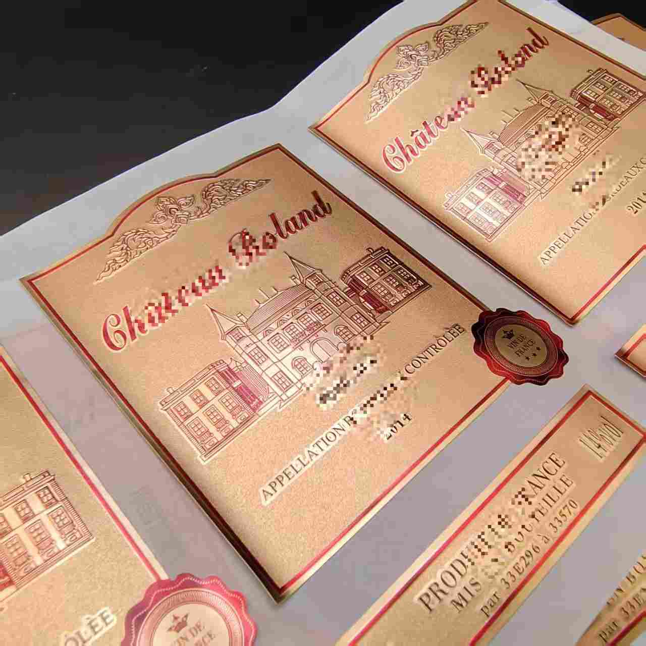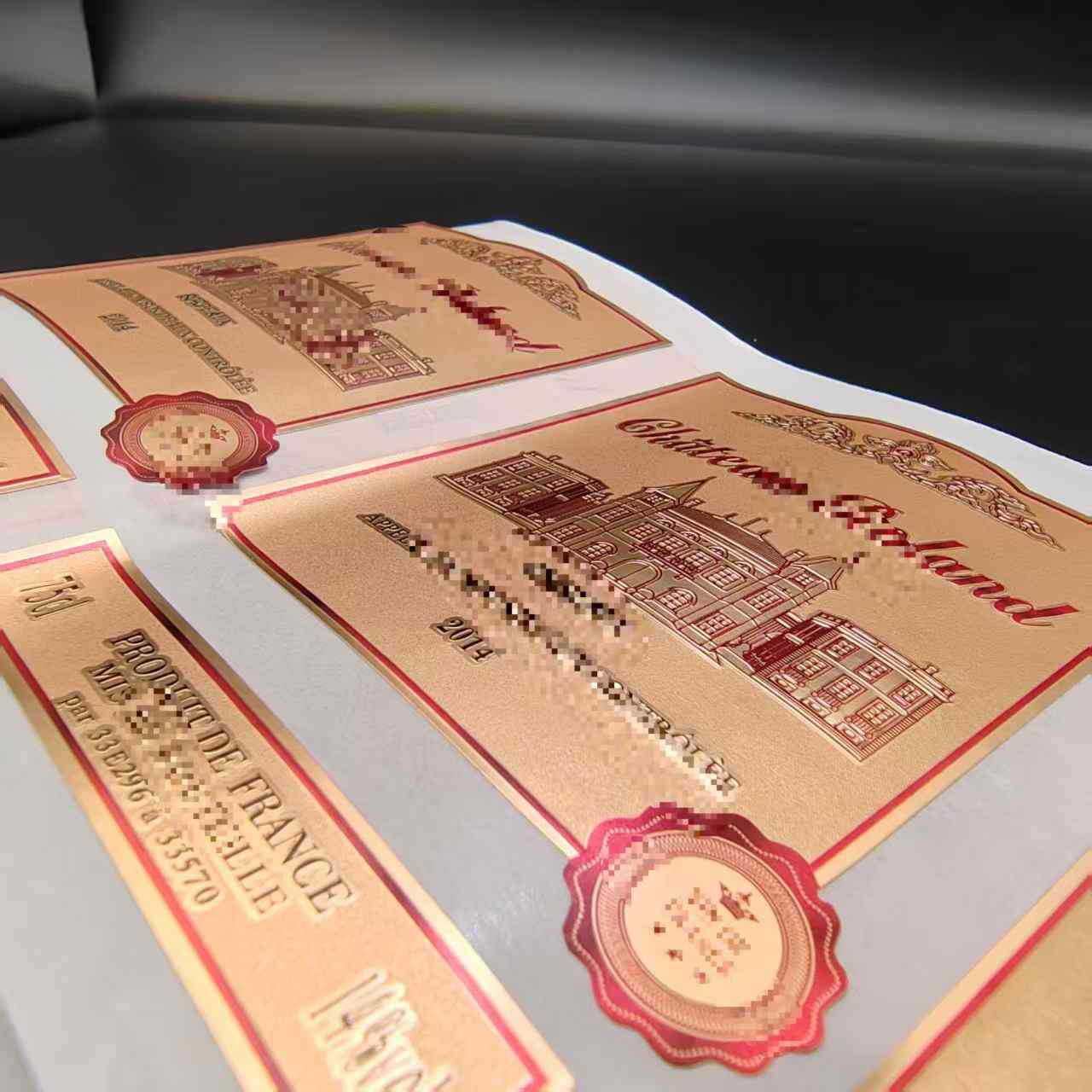 Os adesivos para garrafas de vinho são feitos de material de PVC de alta qualidade, os rótulos de vinho dourados à prova d'água em PVC personalizados têm excelente resistência à água e umidade.